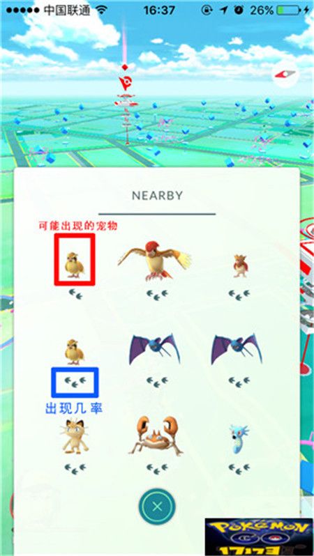 2.點擊附近的寵物可以看到會有一些寵物被顯示出來,每個寵物下方還有腳印,帶白哦該寵物出現幾率,小編我是這么猜測的。