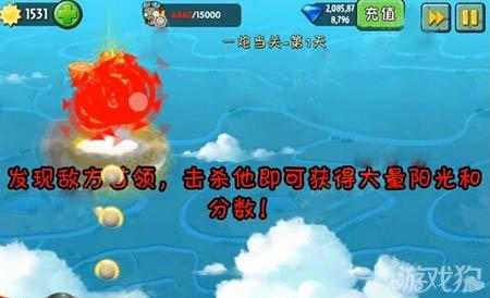 2.大約1400的陽光使用打第一個單發炮,能擊敗地方頭領boss飛行巨人僵尸獲得2000陽光,可以獲得600陽光。
