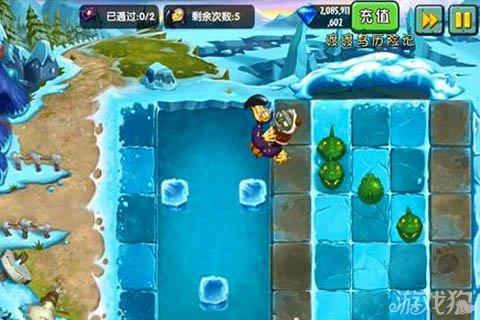過河不能進(jìn)水,需要到冰塊上面,里面的冰塊是移動(dòng)的,我們要看準(zhǔn)位置跳上去,跳也是有一點(diǎn)時(shí)間的,所以當(dāng)冰塊還差半格的時(shí)候起跳,這樣才可以順利跳上去。