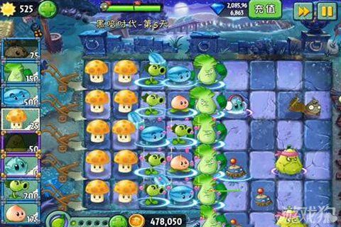 植物大戰僵尸2黑暗時代第五天過關攻略在這里給大家帶來,和前一關沒有多大的區別,主要就是小丑僵尸比較難打一些。可以選擇土豆雷、菜問、冰西瓜、陽光菇、雙重射手(增加火力)、窩瓜(緊急使用)、冰凍生菜、仙桃其他的可以隨便選。