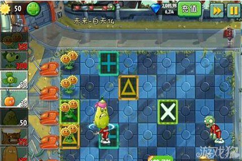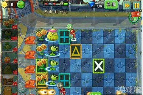 植物大戰(zhàn)僵尸2十四天算是兩個星期了,家園守衛(wèi)的還算是完美,本關(guān)要學(xué)會如何搭配使用,發(fā)揮出最厲害的水平,因為僵尸不弱,所以我們要比僵尸更加的厲害,底面上的三角形,加號,叉叉這些在格子里面顯得還蠻有未來的感覺。