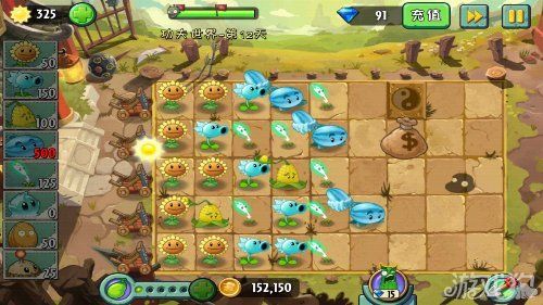 國際慣例,開局開始種向日葵。在武器臺的中間放上冰西瓜。僵尸走過去的時候能夠凍住。
