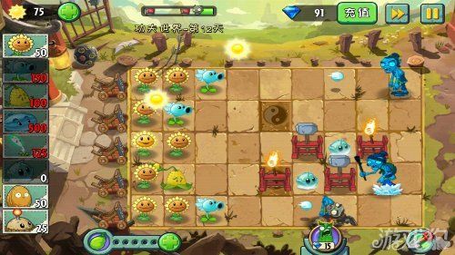 植物大戰僵尸2太陽風暴第二天攻略,感受到了前面的厲害,是不是也很期待再來一次呢,這里似乎主角就是激光豆了,放在瓷磚里面準備隨時來開……