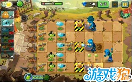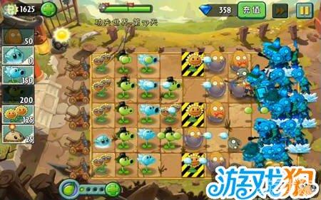 首先第一個出來的是火把僵尸,先拿冰凍生菜給凍住。開始種向日葵,僵尸出來小編就種雪花豌豆來消滅。錘子僵尸用土豆地雷對付是最好的了。接……