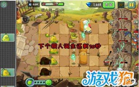 游戲中后期:打法和前面一關差不多,椰子加農炮要記得攻擊,別漏了一個強大火力,每一排都要種植玉米投手,運氣好的話還能固定僵尸呢。
