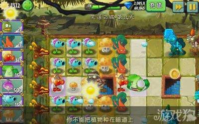 植物大戰僵尸2失落之城第14天圖文過關攻略,本關新增了失落向導僵尸,他會挖掘一個地道,這個地道可以在你布陣的內場,只要僵尸跟在向導僵尸邊上,很快就內進入你的植物群中。而我們有著菠蘿蜜這個神器,就可以讓僵尸自己挖坑自己跳拉。