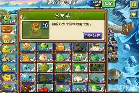 那么我們如何利用安全區域呢,當然是種沒有攻擊力和防御力的陽光菇了,后排種上豌豆是為了解凍的,在浮冰后面種火龍草,小編還是比較喜歡火龍草的,攻擊力很強。