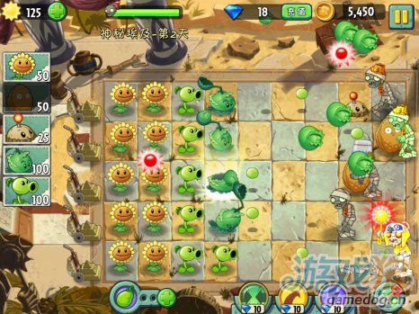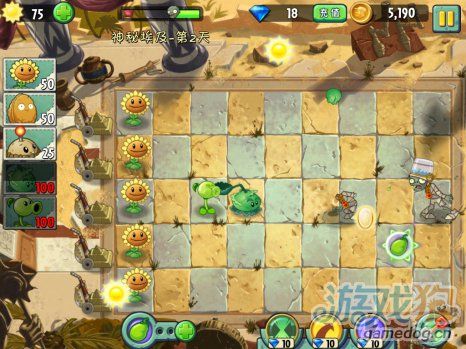 多了個鐵桶僵尸比較難打一點,不過給的能量豆很厲害。開始的首先任務當然就是種太陽啦,出來的第一個僵尸可以種個土豆雷來消滅它。