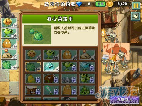 植物都種好位置,當出現一大波僵尸的時候,僵尸會走到你的植物面前開始吃它,這時候就可以選擇用能量豆來攻擊。