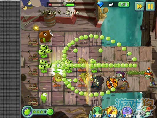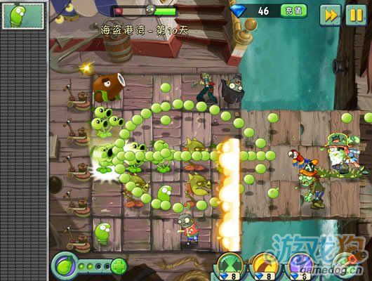這一關和埃及關卡的傳送帶好像,就是放植物擺陣法。豌豆莢非常的厲害放在中間正好可以打三行。星星獲得條件:成功抵抗大波海盜僵尸入侵。蛟……