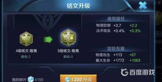 在游戲中玩家默認擁有的所有都是1級銘文,消耗銘文碎片可以從1級升到5級。