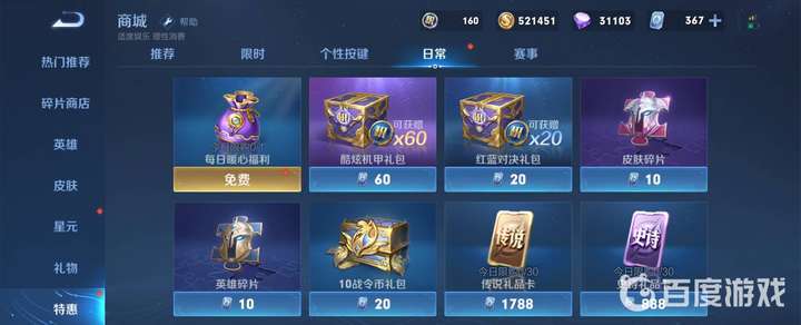 3、在商城的特惠頁面中,玩家在日常的選項(xiàng)里面,能夠花費(fèi)點(diǎn)券去購買英雄碎片,10點(diǎn)券1片。