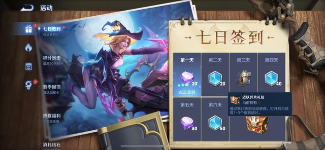 第一種方法,七日簽到,簽到滿七天就可以獲得1~3個皮膚碎片。