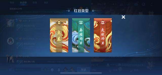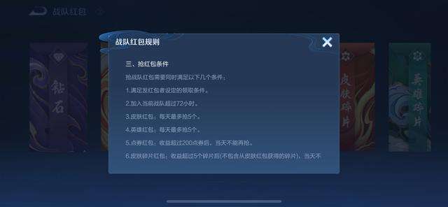 第五種方法,戰隊紅包可以領取到其他戰友發放的皮膚碎片、