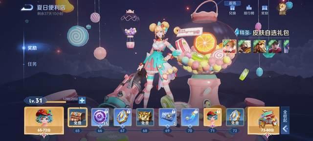 免費版戰令升到65級,可以必得一個永久皮膚自選寶箱,其中有孫尚香-水果甜心這一款永久史詩皮膚,其次還有忍*炎影、龍騰萬里、兔女郎等精品皮膚可以自選。