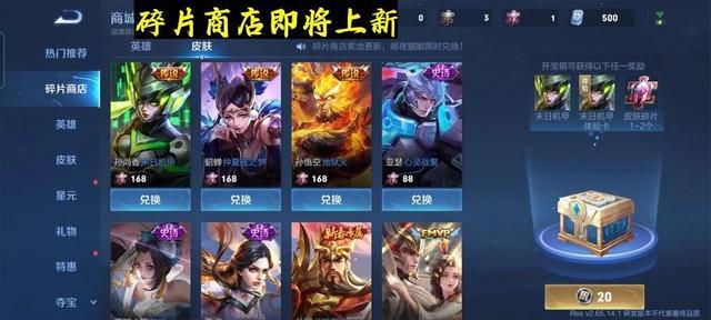 7月25日更新的碎片商店即將更新同樣讓玩家們充滿期待。孫尚香的末日機甲、貂蟬的仲夏夜之夢、孫悟空的地獄火等熱門皮膚將加入碎片商店的行列。其中更有四款皮膚需要168皮膚碎片才能兌換,讓玩家們在選擇時不得不進行一番權衡。