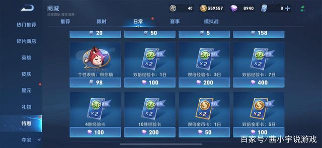 在游戲的商店里面,玩家也可以用銘文去日常選項中進行一些購買,比如可以購買經驗卡之類的物品。