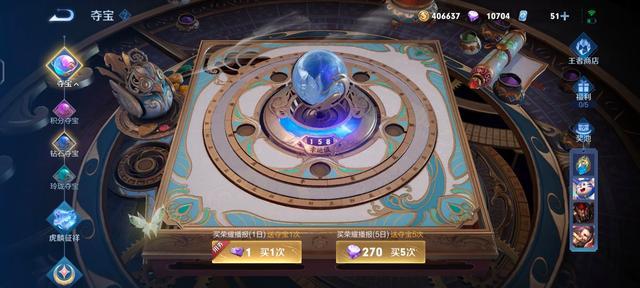 除了銘文以外,我們的鉆石還可以用來鉆石奪寶,在這里面可以拿到王者水晶能夠兌換皮膚,兌換英雄,兌換其他的游戲道具。