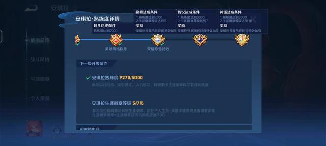 1、英雄熟練度達(dá)到3500.熟練度可以通過(guò)參與實(shí)時(shí)對(duì)戰(zhàn)、娛樂(lè)模式、人機(jī)練習(xí)以及解鎖更多生涯徽章獲得;