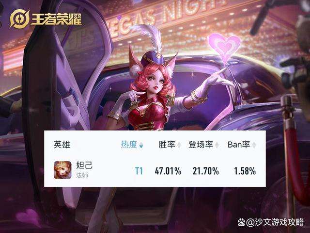 妲己已成下T3強度水道英雄之一。她本賽季47.01%的勝率、1.58%的ban率和21.7%的登場率排在熱度榜第三位。雖然熱度很高,但是這個勝率屬實對不起這個熱度。妲己以其簡單的一套秒人爆發傷害受到玩家喜愛,有很多的女神玩家不管什么版本都非常鐘愛她。但是當前版本強度真的有點拉胯,表現略顯遜色,所以不建議大家用來上分。