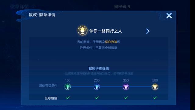 至于生涯徽章的獲取,需要玩家在日常對局中解鎖獲得。玩家使用不同的英雄進行對局能夠解鎖不同類型的生涯徽章,按照結算-英雄-生涯徽章切頁的路徑可以查看到本局獲得的生涯徽章,點擊該徽章還可查看獲取條件及相關詳情。