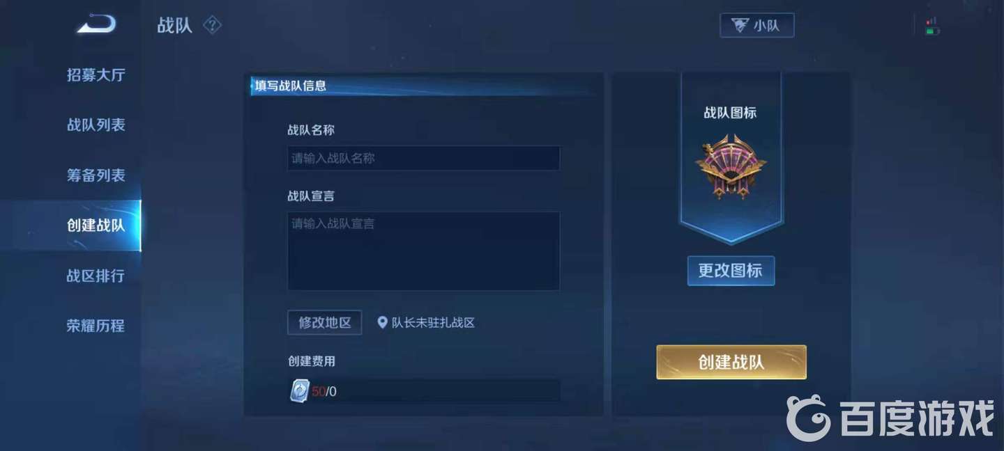 王者榮耀創(chuàng)建戰(zhàn)隊多少錢