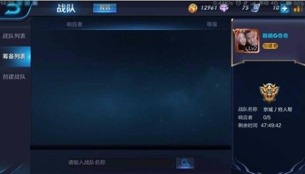 創建戰隊的第二個條件,戰隊必須要有5個創始人,也就是創建戰隊的響應者,除了最基本的點券之外,必須要有5個戰隊成員才能創建成功,否則創建失敗。自己創建的戰隊,自然也就成為了戰隊的隊長,如果還想要加人進戰隊,隊長或者福隊長都有這個權限邀請進戰隊。
