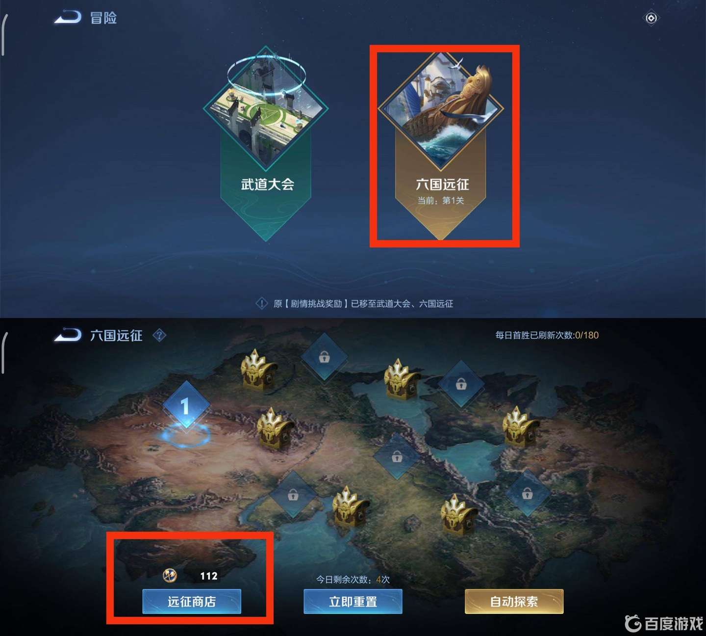 3.打開冒險模式之后點擊六國遠征,然后點擊遠征商店。