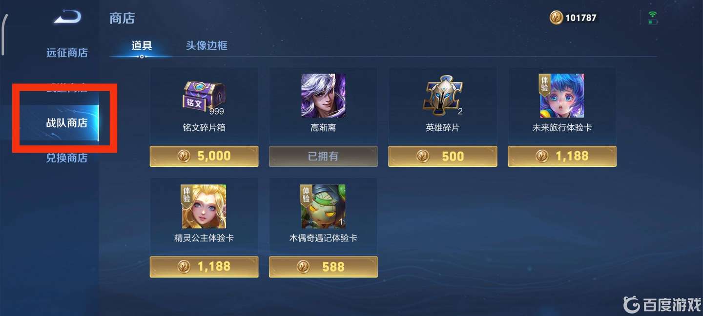 3.打開商店之后就可以使用戰隊幣了。