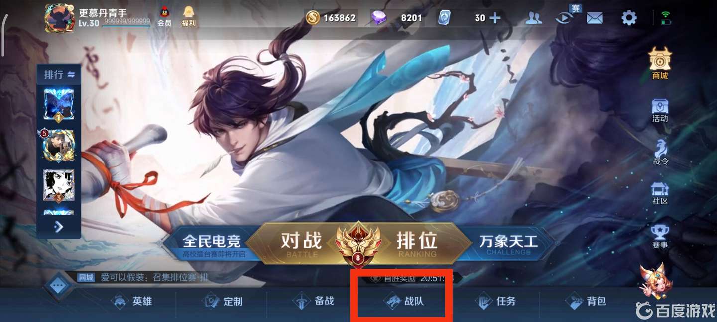 第二種方法: 1.進入游戲大廳點擊下方的戰隊。