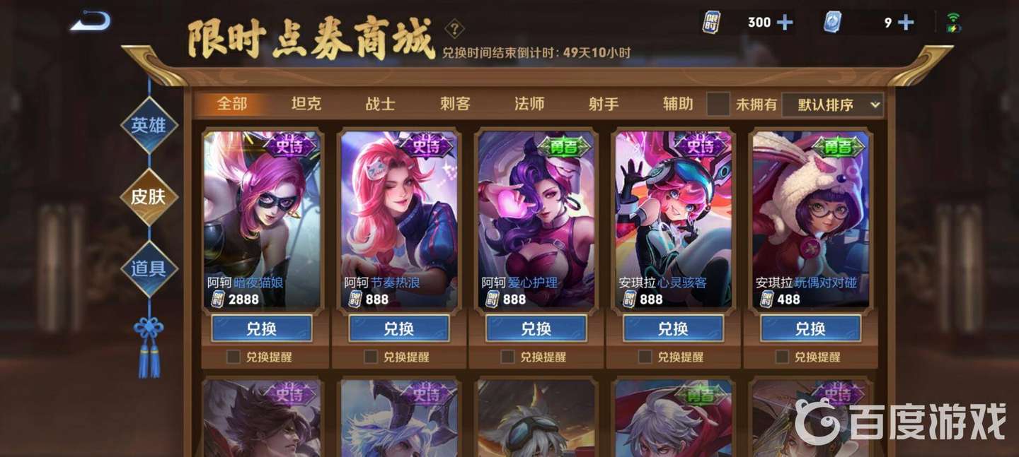 2、限時點券可用于限時點券商城中的英雄、皮膚以及道具,大家也可以在商城中查看自己的余額;