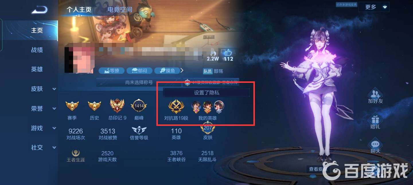 這樣其他玩家在點擊我們個人主頁我的英雄時就會顯示設置了隱私。