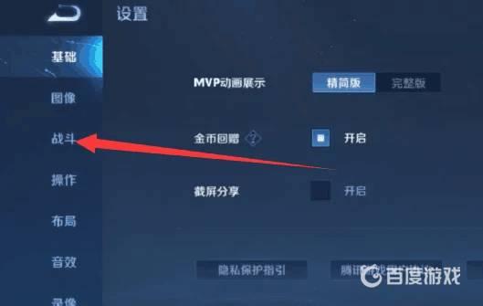 2.打開設置界面后,點擊左邊的戰斗設置。