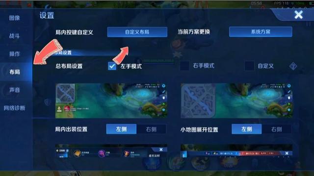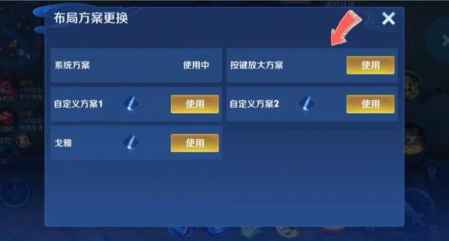 還有一個本賽季非常大的改動,那就是我們打開布局,然后找到自定義布局,然后點擊系統方案,然后在這些方案當中,有一個按鍵放大功能。