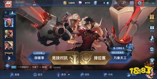 1、進入王者榮耀游戲,點擊首頁右上角的設(shè)置;
