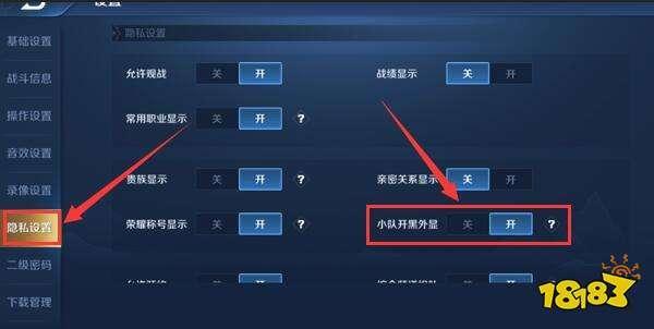 2、進入設(shè)置頁面后,點擊隱私設(shè)置,找到小隊開黑外顯,點擊開就可以了。