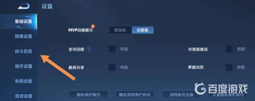 步驟二:在設置中找到戰斗信息選項,點擊進入;