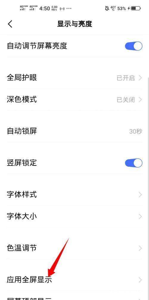 2、點(diǎn)擊“應(yīng)用全屏顯示”選項(xiàng)。