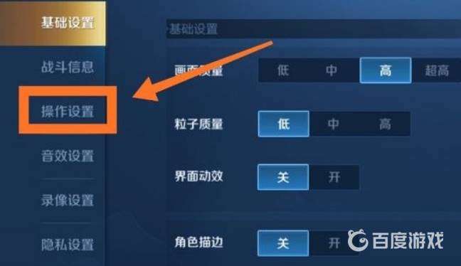 2.進入“設置”界面后,點擊箭頭處的“操作設置”