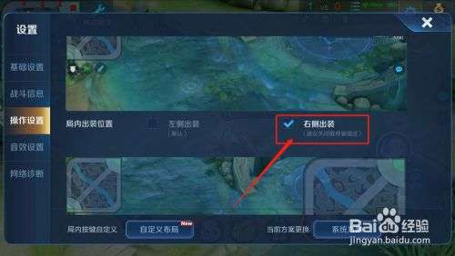 1 1. 點擊桌面上的王者圖標,進入游戲。 2. 開啟任意一局游戲。 3. 點擊右上角的“設置”按鈕。 4. 接著點擊“操作設置”。 5. 在右側處按住屏幕往上滑動,找到“局內出裝位置”,接著選擇“右側出裝”。 6. 最后關閉設置頁面,我們就能看到裝備欄位置已經改變啦。 END