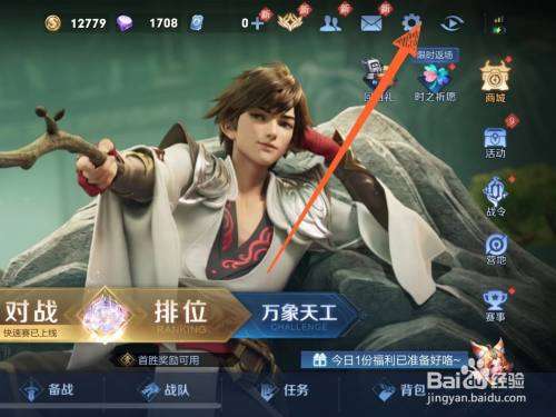 1 打開王者榮耀進入游戲頁面后點擊上方設置圖標。