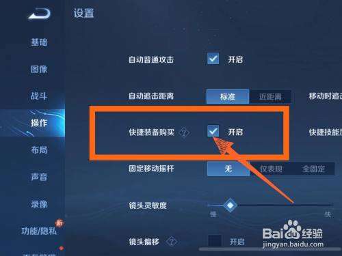 3 在操作設置頁找到【快捷裝備購買】并將后方【開啟】勾選上就可以了。
