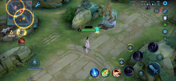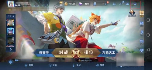 1、在對局中就可以將商店調到右上角,首先點擊右上角的設置。
