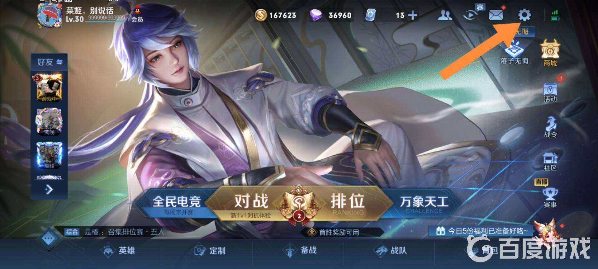 首先進入王者榮耀游戲中,然后點擊右上角的設置按鈕。