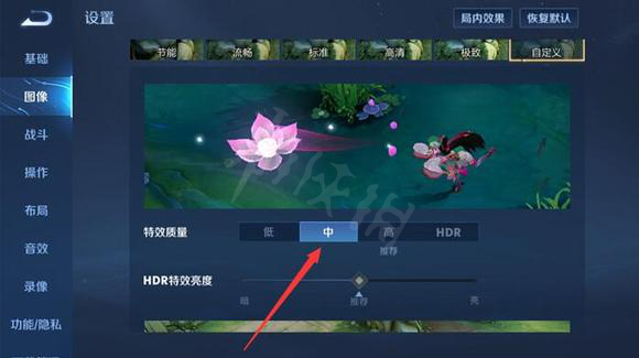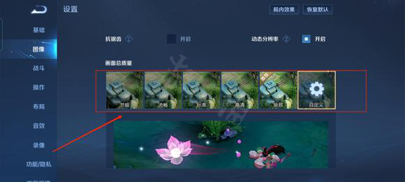 3、王者榮耀傷害數值沒有了或者不顯示是因為玩家調低了游戲畫質。在圖像設置界面中重新調整畫面質量,畫面質量設置為低檔,則游戲中是不會顯示傷害量數值的。
