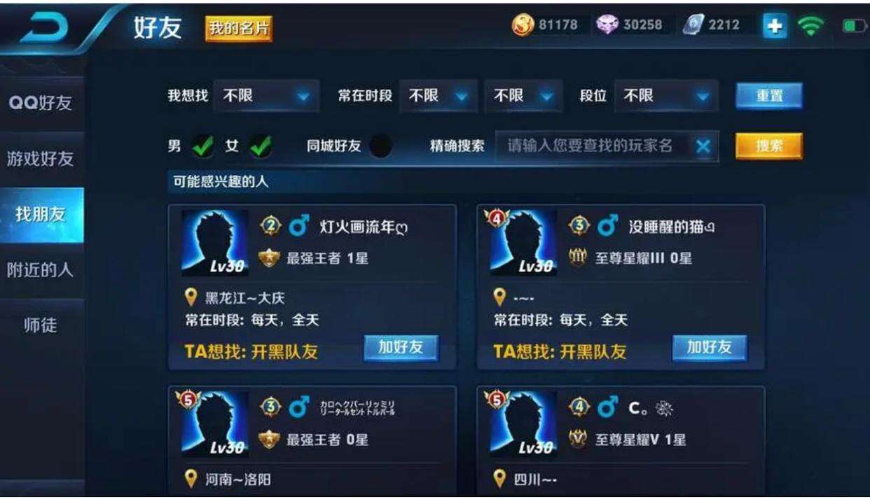 當玩家在組隊界面時,就能看到旁邊的好友欄里顯示出哪些好友在線、哪些好友雖然在線但是沒有游戲等信息,玩家能根據這些信息選擇出可以與自己一起開黑的伙伴。