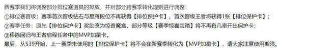 上個(gè)賽季未使用的排位保護(hù)卡,也不會(huì)再轉(zhuǎn)化為MVP加星卡了。