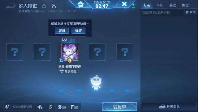 第一個(gè),以后在匹配時(shí)間過(guò)長(zhǎng)時(shí),系統(tǒng)會(huì)提示你切換成臨時(shí)補(bǔ)位。