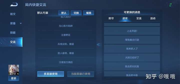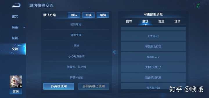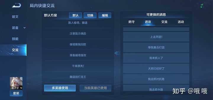 第二簡單的交流方式,但很死板。僅僅是利用系統設定好的語句模板交流。在被禁言后依舊生效。推薦設:回防高地、等等我,馬上到、撤退,別打龍王(這句話直接包含了三種龍)