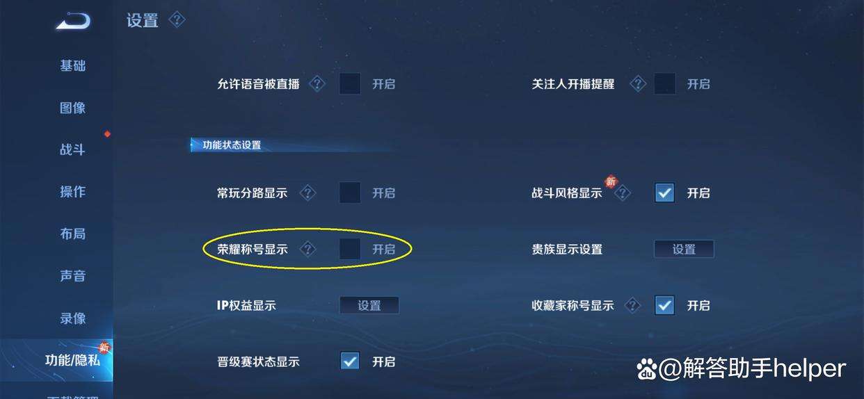 隱藏榮耀稱號:同樣在“榮耀稱號顯示”中選擇“關閉”,即可低調行事。